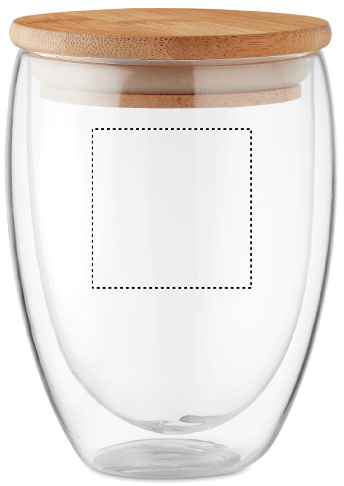 Glas med dubbelvägg i värmeresistent glas med bambu lock som har en silikonring. Volym 350 ml. Eftersom bambu är ett naturligt material kan vissa färgskiftningar förekomma.