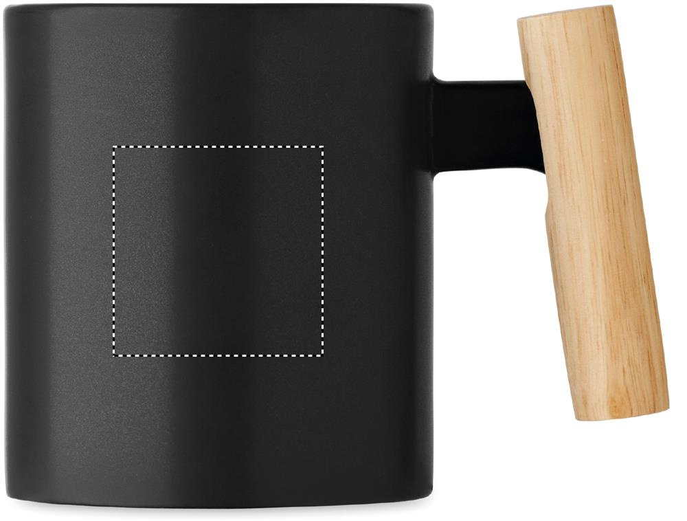 Keramikmugg med handtag av trä. Volym: 320 ml. Produkten kräver handdisk. Individuellt förpackad i vit kartong.