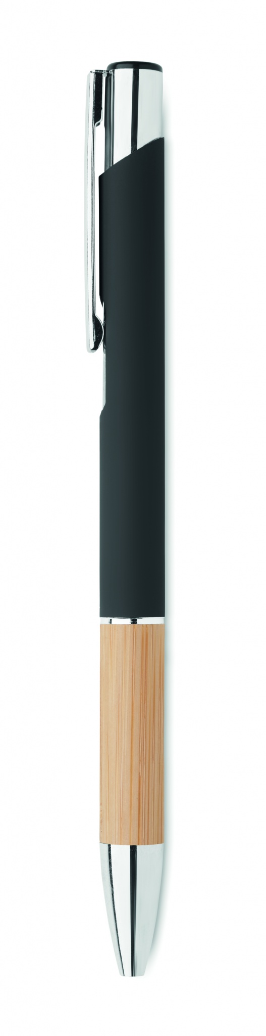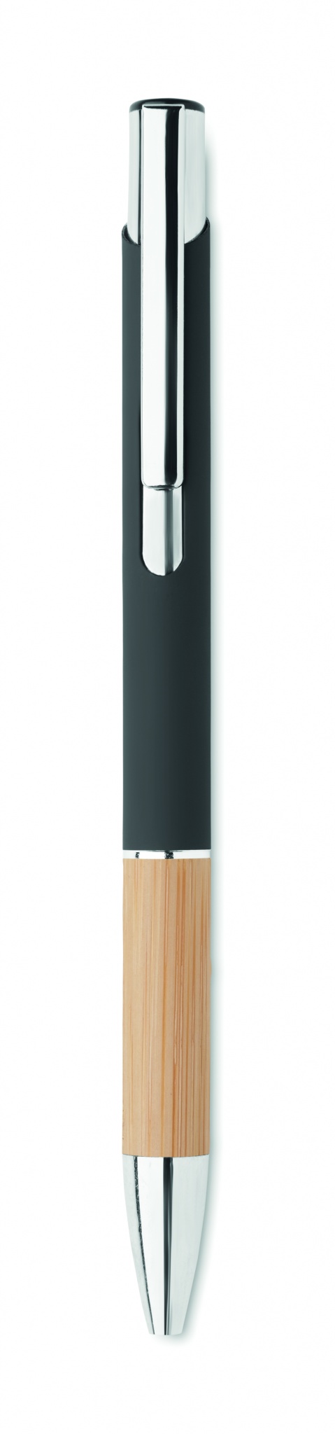 Kulspetspenna tillverkad av aluminium med ett grepp av bambu, Svart