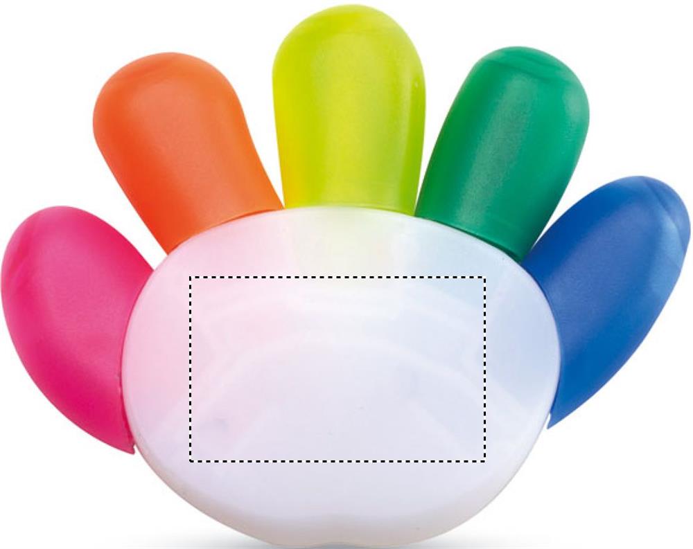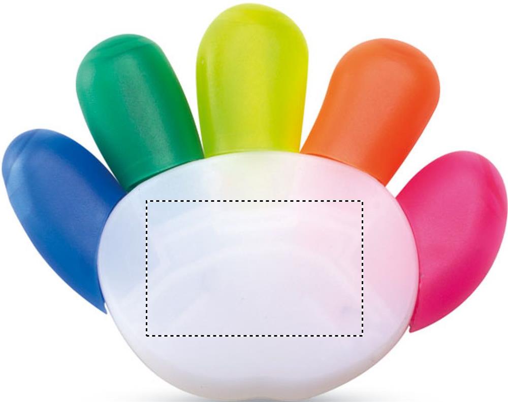 Highlighter med 5 färger i en ''High five'' form. Stor tryckyta.