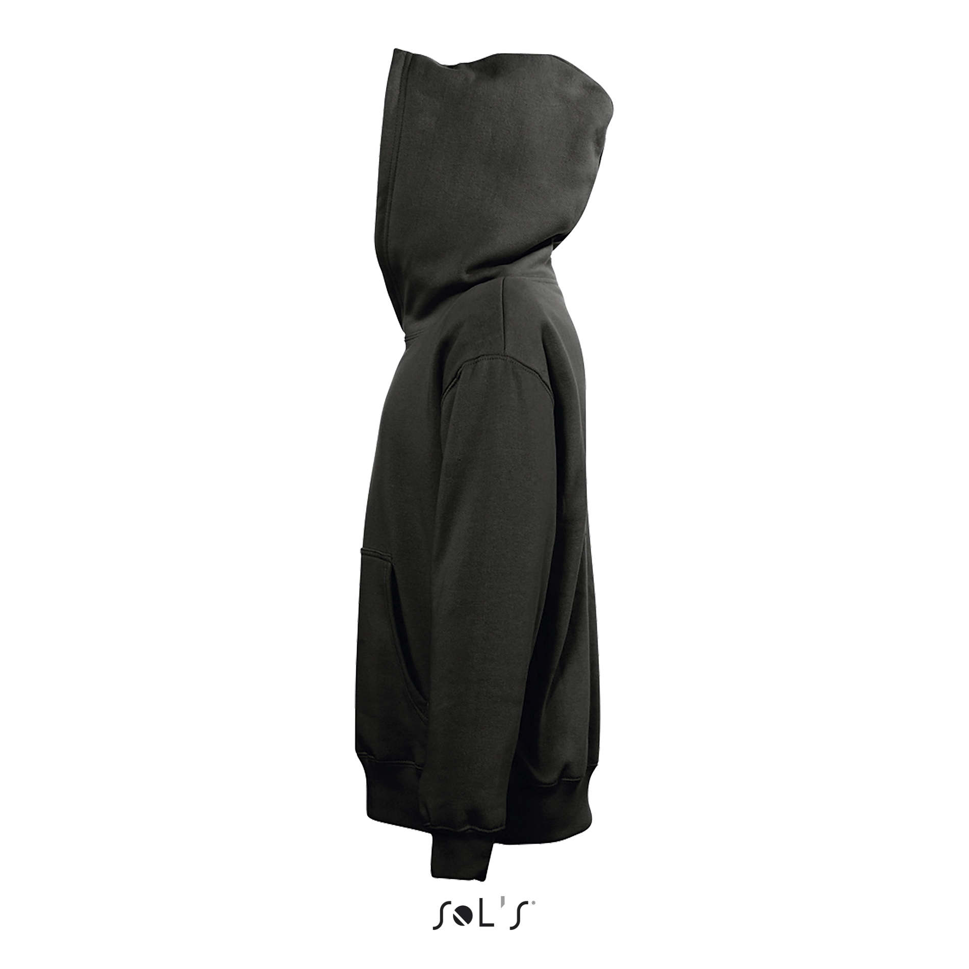 SOL'S SLAM KIDS, HUVTRÖJA FÖR BARN, 50 % ringspunnen bomull - 50% polyester BRUSHED FLEECE 280, Ribbstickning i elastan, Släta ärmar, Skuren och sydd, Kängurufickor, Fodrad huva utan dragsko för matchande storlekar, se storlekstabellen i avsnittet om produktdokumentation.