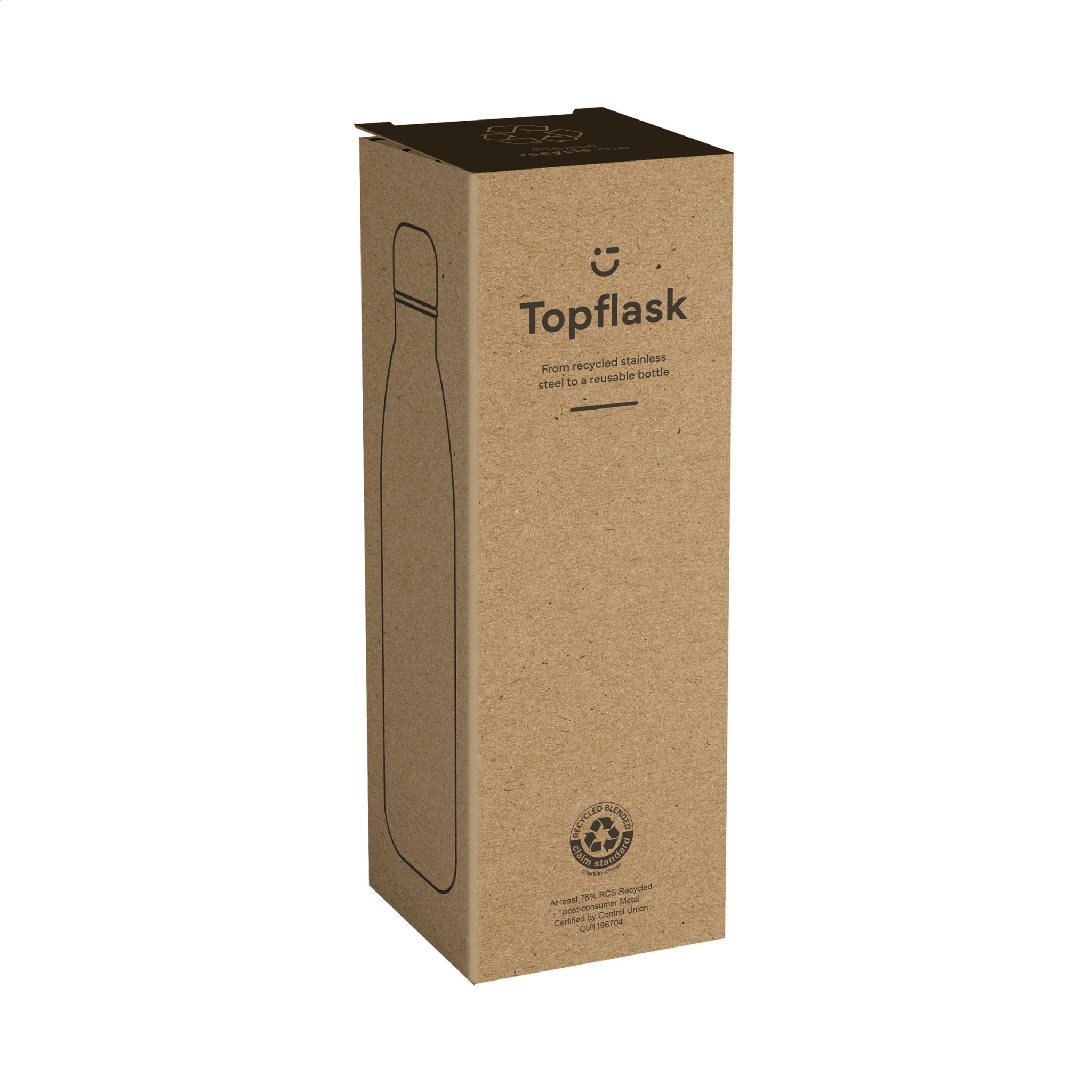 WoW! Enkelväggig vattenflaska tillverkad av återvunnet rostfritt stål. Med läckagesäker skruvlock. RCS-certifierad. Totalt återvunnet material: 78%. Kapacitet 500 ml. Rostfritt stål kan återvinnas många gånger med bibehållen kvalitet på materialet. Genom att använda återvunnet rostfritt stål behövs färre nya råvaror. Det innebär mindre energiförbrukning och mindre användning av vatten. Ett ansvarsfullt val. Varje artikel levereras i en individuell brun kartong.