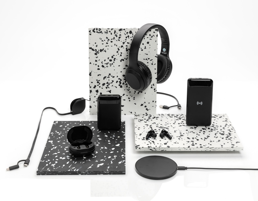 Logotrade kampanjprodukter bild: Trådlös powerbank i återvunnen plast, RCS standard