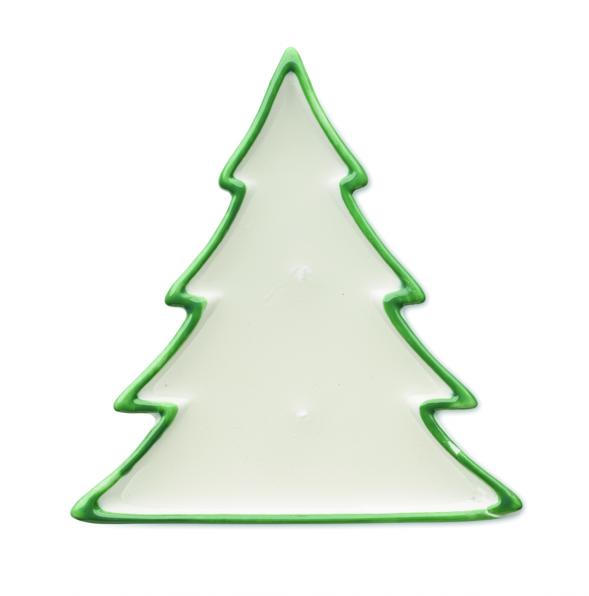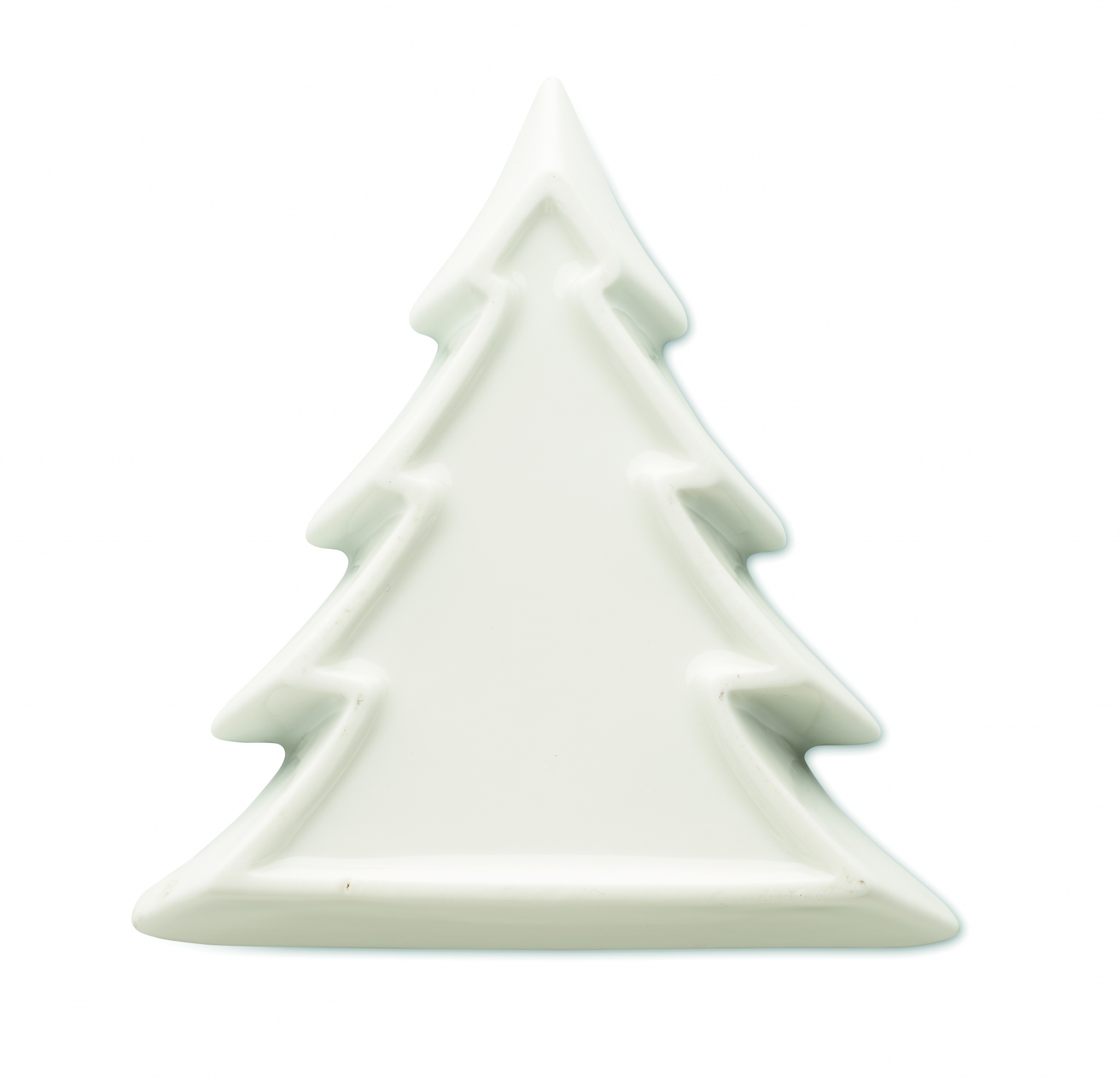 Växtbaserat vaxljus i julgransformad porslinshållare med 2 vekar. 60 g. Brinntid: 4 timmar.